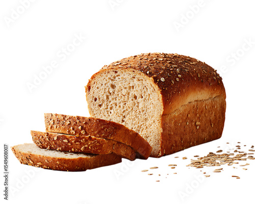 Sliced oat bread loaf isolated on transparent background