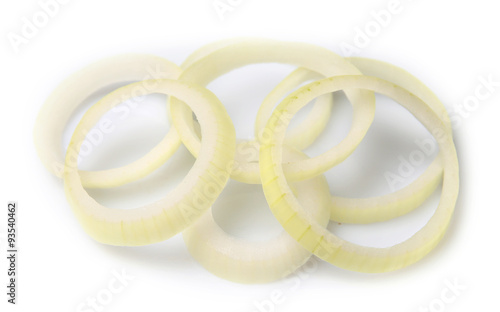 Sliced onion rings isolated on white