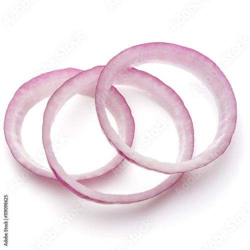 Sliced red onion rings isolated on white background cutout