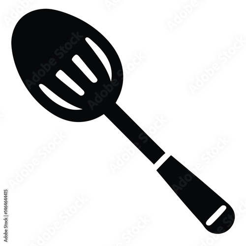 Slotted spoon icon presents simple solid form revealing kitchen tool simplicity and function