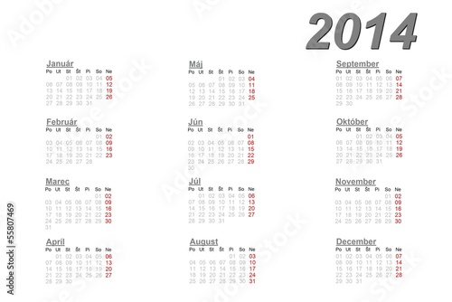 Slovak calendar for 2014