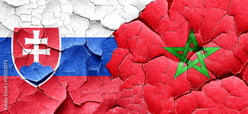 Slovakia flag with Morocco flag on a grunge cracked wall