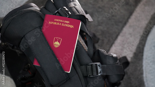 Slovenia Passport on a Black Suitcase Travel Bag