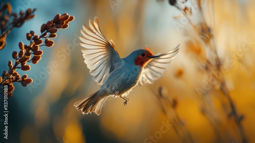 Small bird in flight, wings spread wide.