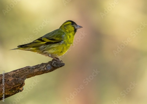 Small black bird perched on a grassy and leafy ground, illuminated by a bright sun