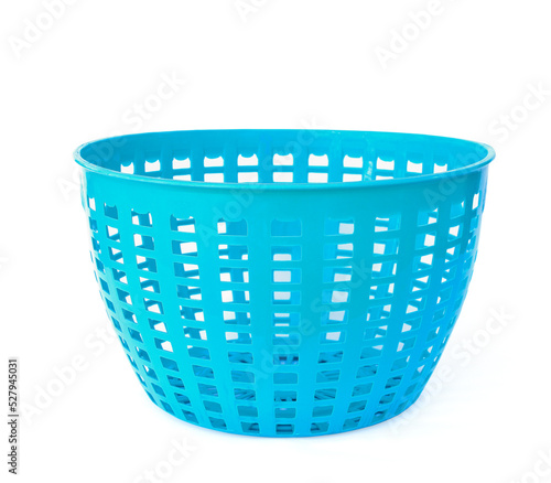 Small blue plastic basket isolated on white background
