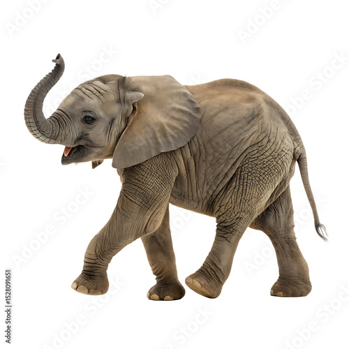 Small cute baby elephant on the move isolated on a transparent background