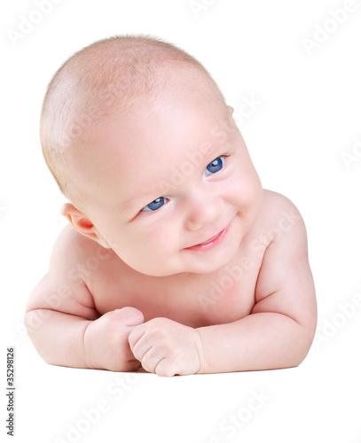 Small happy child isolated on white background
