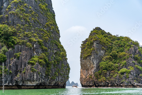 Small passage between two islets in Ha Long Bay, Quang Ninh, Vietnam