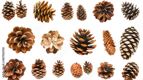 Small pinecones set on transparent background