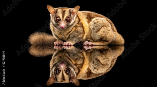 Small Primate with Reflection on Black Background