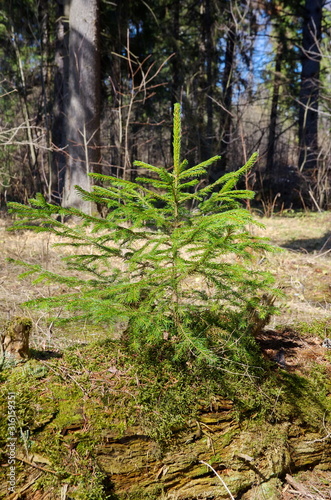 Small spruce in the spring forest