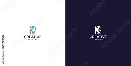 smart bulb logo icon. bulb logo technology. initial logo design K