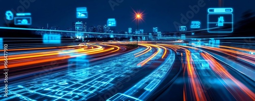 Smart city monitoring, holographic traffic flow data, digital urban management