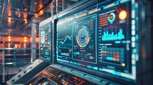Smart Grid Monitoring and Control Console Displaying Futuristic Power Plant Management Concept
