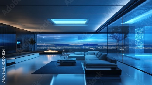 Smart home with AI controlled architectural space, sleek minimalist design, background wallpaper AI generated image