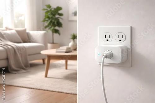 Smart Plug Installed in Wall Outlet in Modern Living Room