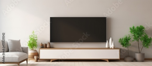Smart TV display mockup in contemporary living space