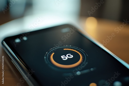 Smartphone Displaying 5G Connectivity Symbol Close-Up: Modern Technology and Wireless Communication