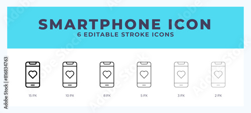 Smartphone icon in thin line. Bold line. Regular line. Editable stroke.