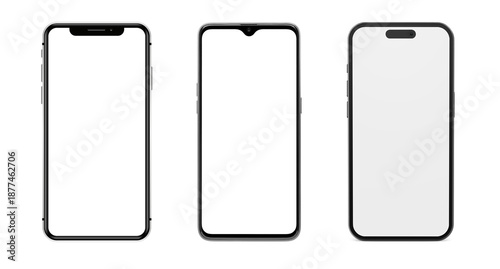 Smartphone Screen Mockups Set with Different Notch Styles Isolated on White Background