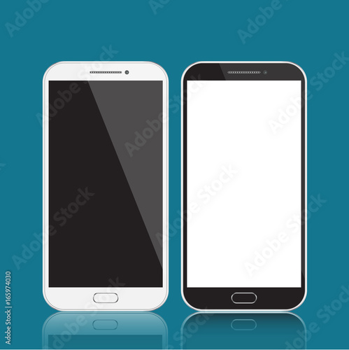 Smartphones black and white. Smartphone isolated on blue background. Vector illustration