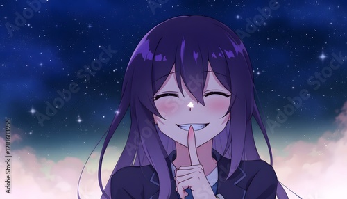 Smiling Anime Girl Night Sky Wallpaper