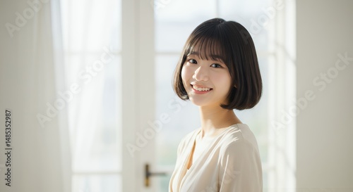 Smiling Asian Woman by Window