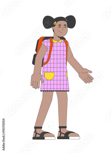 Smiling black schoolgirl back to school 2D cartoon character. African american pupil girl isolated flat vector person white background. Schoolchild elementary school color spot illustration