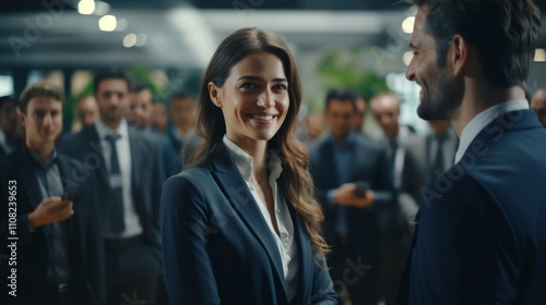 Smiling Businesswoman and Colleague in Modern Office Environment