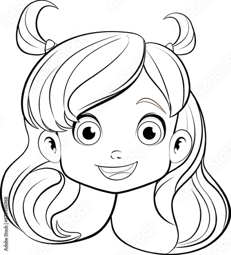 Smiling Cartoon Girl with Head Outline