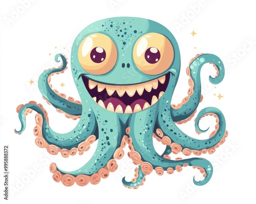 Smiling cartoon monster with tentacle eyes and an octopus design 2D illustration on white perfect for party decor greeting cards and t shirt prints