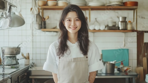 Smiling Female Chef in Modern Kitchen