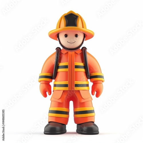 Smiling fire fighter figurine stands ready for action.