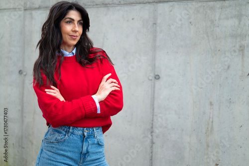 Smiling friendly confident woman in formal wear with crossed arms