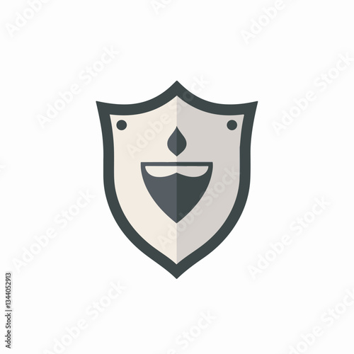 Smiling silver shield icon symbolizing safety, protection, and positive security representation.