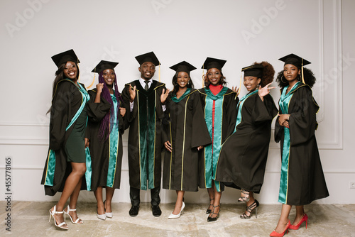 Smiling students posing in the academic dresses