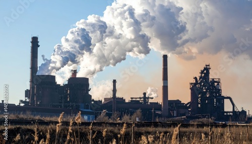 Smoke Emitting from Industrial Factory Under Clear Blue Sky
