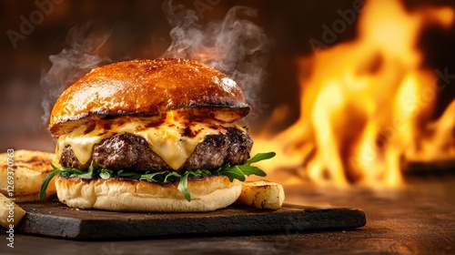 Smoked hamburger, a delicious culinary experience of savory fast food delight juicy