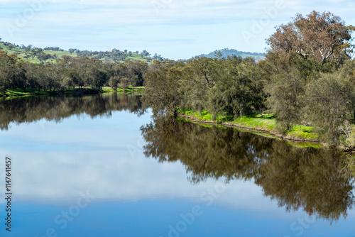 Smooth calm river section with reflections