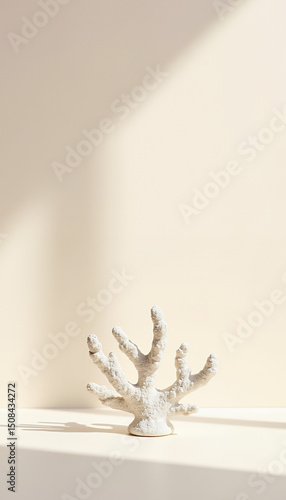 Smooth piece of white coral displayed on minimalist pastel background