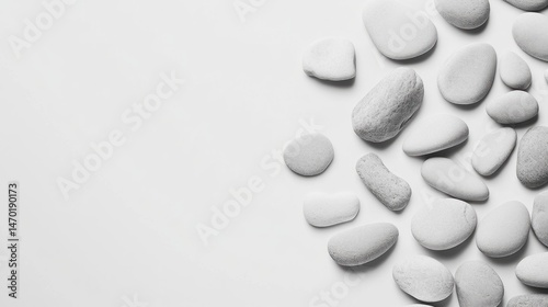 Smooth stones arranged on a white background