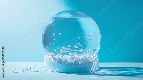 Snow globe on a blue background with winter elements