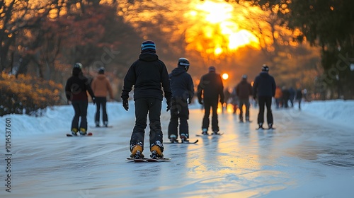 Snowboarding enthusiasts hitting the slopes on a crisp February afternoon