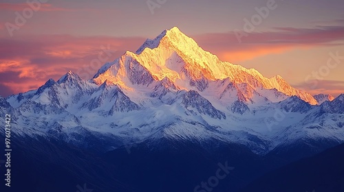 Snow-Capped Mountain Range at Sunset with Pink Clouds
