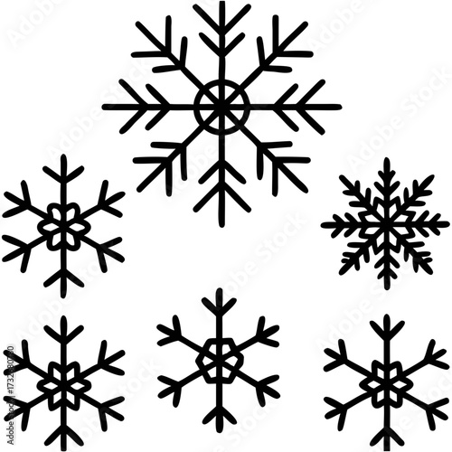 Snowflake Vector Art, Silhouette Snowflake Vector, Snowflake Silhouette Vector Set, Winter Snowflake