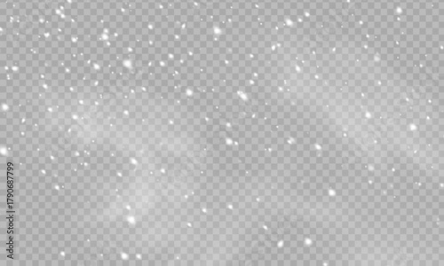 Snowflakes falling decoration isolated background. White snow flying on transparent