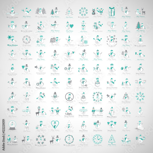 Snowman Icons Set - Isolated On Gray Background.Vector Illustration,Graphic Design.Collection Of Xmas Icons.For Web,Websites,Print,Presentation Templates,Mobile Applications And Promotional Materials