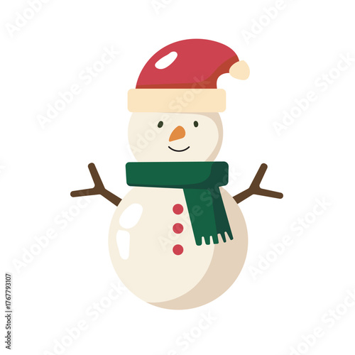 snowman with red hat. Snowman with a scarf, gloves and hat. Christmas tree toys. Snowman isolate stickers. Vecor background