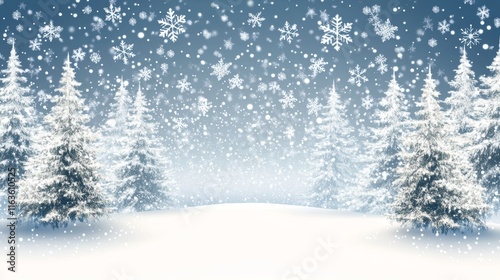 Snowy and icy backdrop with falling snowflakes. Winter snowfall of white flakes and shining snowstorm or blizzard effect. Christmas holiday background.